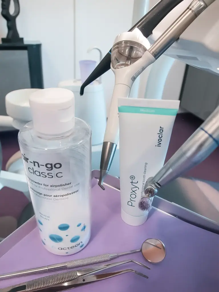 - Izbjeljivanje u ordinaciji (in-office whitening) – provodi se profesionalnim sredstvima u jednoj posjeti, često uz aktivaciju LED svjetlom za pojačan učinak.